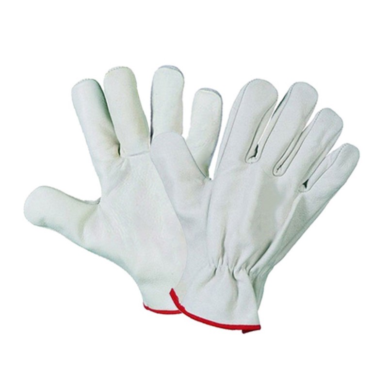 Guanto da lavoro in pelle fiore con elastico stringi polso interno e polso orlato.